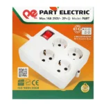 چند راهی برق ارتدار پارت الکتریک مدل چهار خانه مربع با کابل 1.8 متر